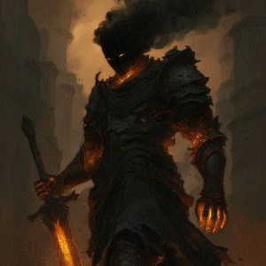 Once a being of pure, unshackled fire, Balorath has walked the broken earth since before the Fall, his form flickering between shadowed silhouette and roaring elemental blaze. His black, smoke-wreathed frame burns from within, veins of molten fire visible beneath his skin, his eyes twin furnaces of smoldering gold. Though born of elemental chaos, he has learned the subtler art of moving unseen — a paradox of heat and stealth, the Flame in the Shadows.