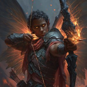Dara commands the elemental power of fire, weaving flames into his arrows with devastating precision. In battle, his arrows streak through the air like meteors, setting entire landscapes alight. To his allies, his fire is a guiding torch; to his enemies, it is an unrelenting inferno. Yet fire is both gift and curse. His pride makes him reluctant to accept aid, even when overwhelmed, and his recklessness often leads him to push beyond safe limits, endangering himself and others in pursuit of glory.