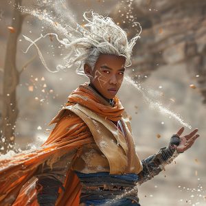 In the wind-scoured breadth of Darkwood Desert (Wastes), beneath a sky so clear it seemed an unblinking witness, Tsuse Yasuko was spoken into notice as Djinn are—by oath and consequence rather than cradle-song. Gold-haired and red-eyed, he moved among the glass shrines of the Order of Solaris and the mirrored beacons raised by the Reclaimers, listening to heat-songs in stone and the long arguments of dunes. From his earliest reckonings he proved a Wind-spirit Philosopher: language was his blade, silence his shield, and every promise a door that opened both ways. Where other wanderers begged water, he bargained with storms, casting illusions that bent distance into mercy and hid the weak from raiders’ sight. Yet his mercy was never simple. In the Veil Cycle’s shifting hours his art flowered into the craft of the Illusionists, and the desert learned to distrust its own horizons; mirage became scripture, and scripture became a battlefield. With a word he could raise a forcefield like a circle of tempered air, sealing children and pilgrims against grit and steel; with a breath he could loose bright blasts of condensed Æther, striking down those who made sport of hunger. So he earned the name Stormscribe—not for thunder alone, but for the way he wrote verdicts into weather and left them standing. Many times he redeemed the condemned, taking their debts into his own keeping, teaching oath-bound brigands to guard the roads they once bled. He dreamed, too, of a new age in which bargains would be measured by justice rather than fear, and he sought forgotten devices in buried kiln-ruins, innovations that might turn desert-waste into living passage. But every salvation fed a shadow in him: each victory proved how easily wills could be shepherded, how swiftly a crowd will kneel to a miracle. He began to taste power as one tastes a rare elixir—first as remedy, then as craving—until the hunt for stronger draughts of resonance drew him toward the dusk-walkers, the Children of the Void, who erase footprints and histories with equal devotion. From them he learned the cold arithmetic of nihilism, the temptation to unmake meaning when meaning wounds. Thus his chronicles are written in two inks: the vow that shelters the frail, and the quiet intention that could, if unresisted, make a tyrant of the very hand that once lifted the fallen. In later years, travelers crossing Darkwood swore the wind itself carried his riddles—warnings and invitations alike—for Tsuse Yasuko remained what his kind has always been: a promise given form, forever testing whether redemption can outpace dominion.